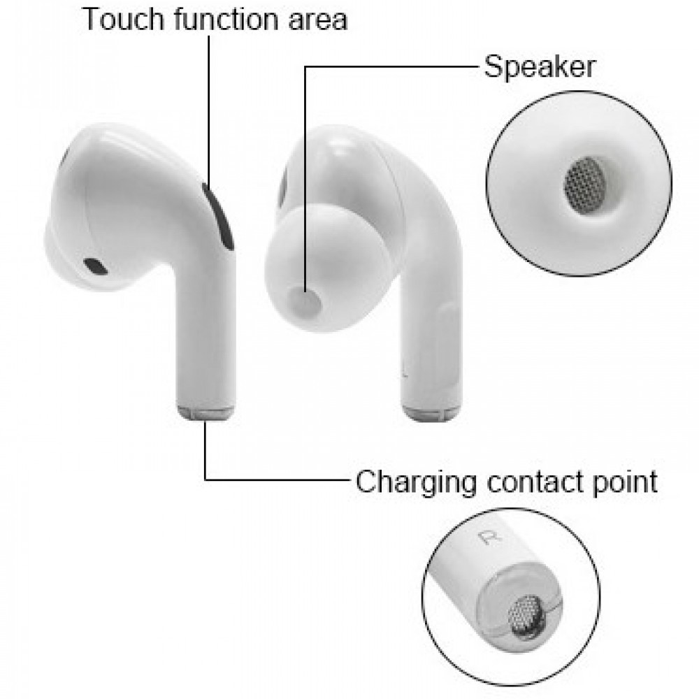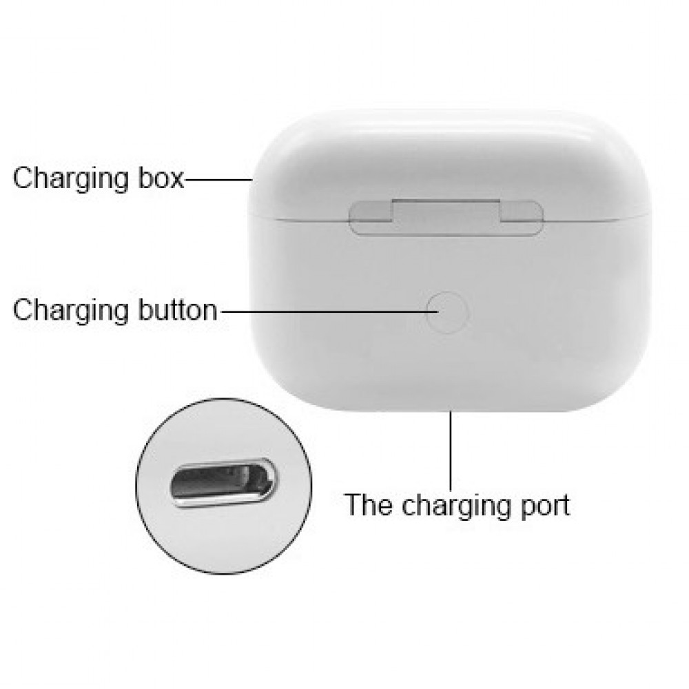 - Wbudowany pojemnik na baterie, za pomocą którego można ładować zestawy słuchawkowe 15 razy
